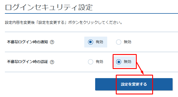 制作してもらったWebサイト(ホームページ含む)が正式に納品され、無事正式に公開されたことを確認できたら、二段階認証と不審なログイン時の認証を再び「設定する」「有効」にすればOKです。