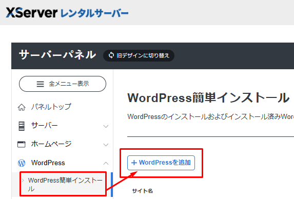 エックスサーバー レンタルサーバーの管理画面に行き「WordPress簡単インストール」を手動で行う必要があります。